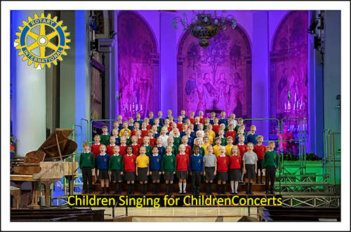 As well as being an antidote to the impending winter gloom, the concerts also raise valuable funds all of which will go to charitable activities supporting young people (see later). The concerts are labelled “Children singing for Children” after the finale song of the same name.